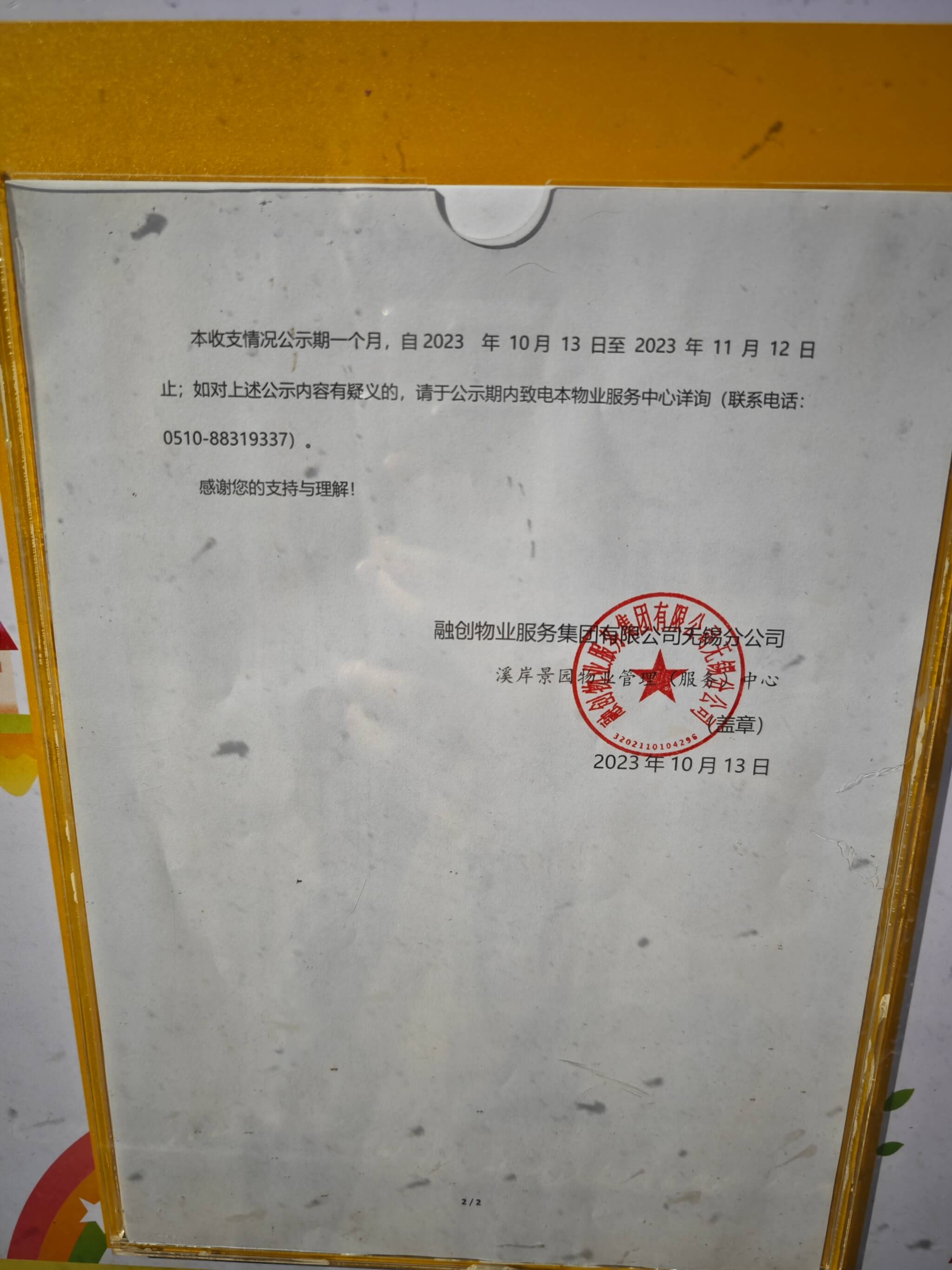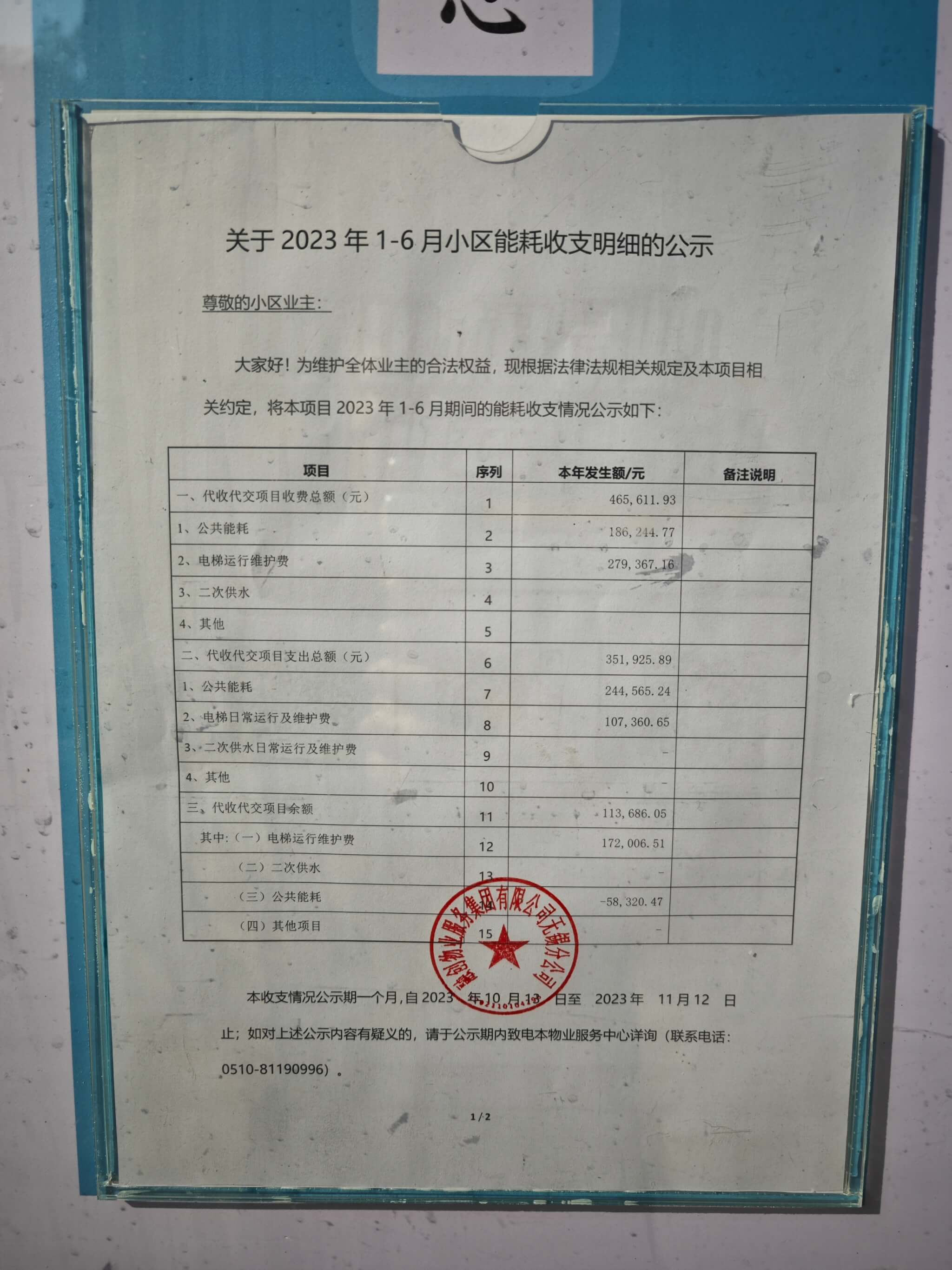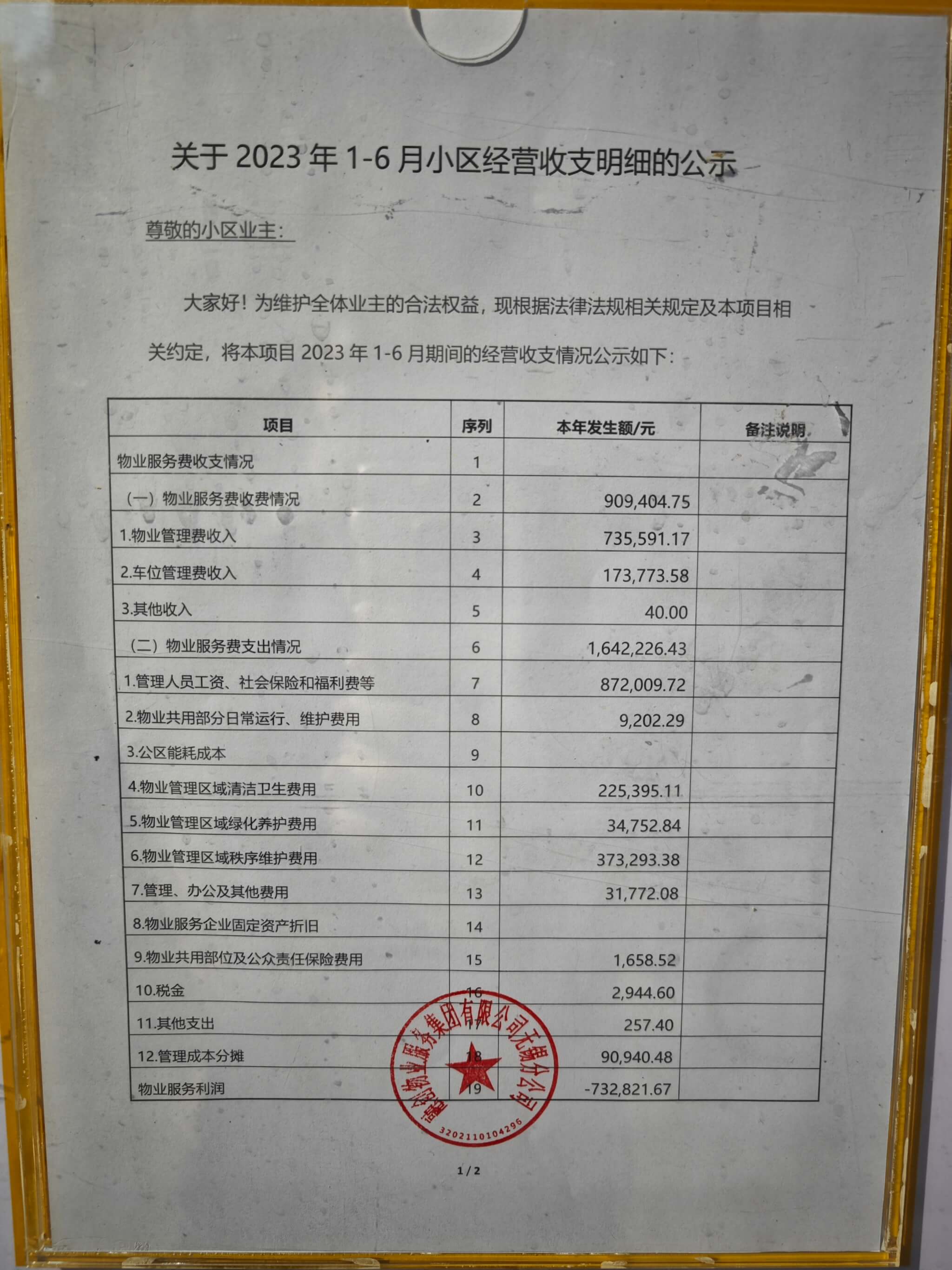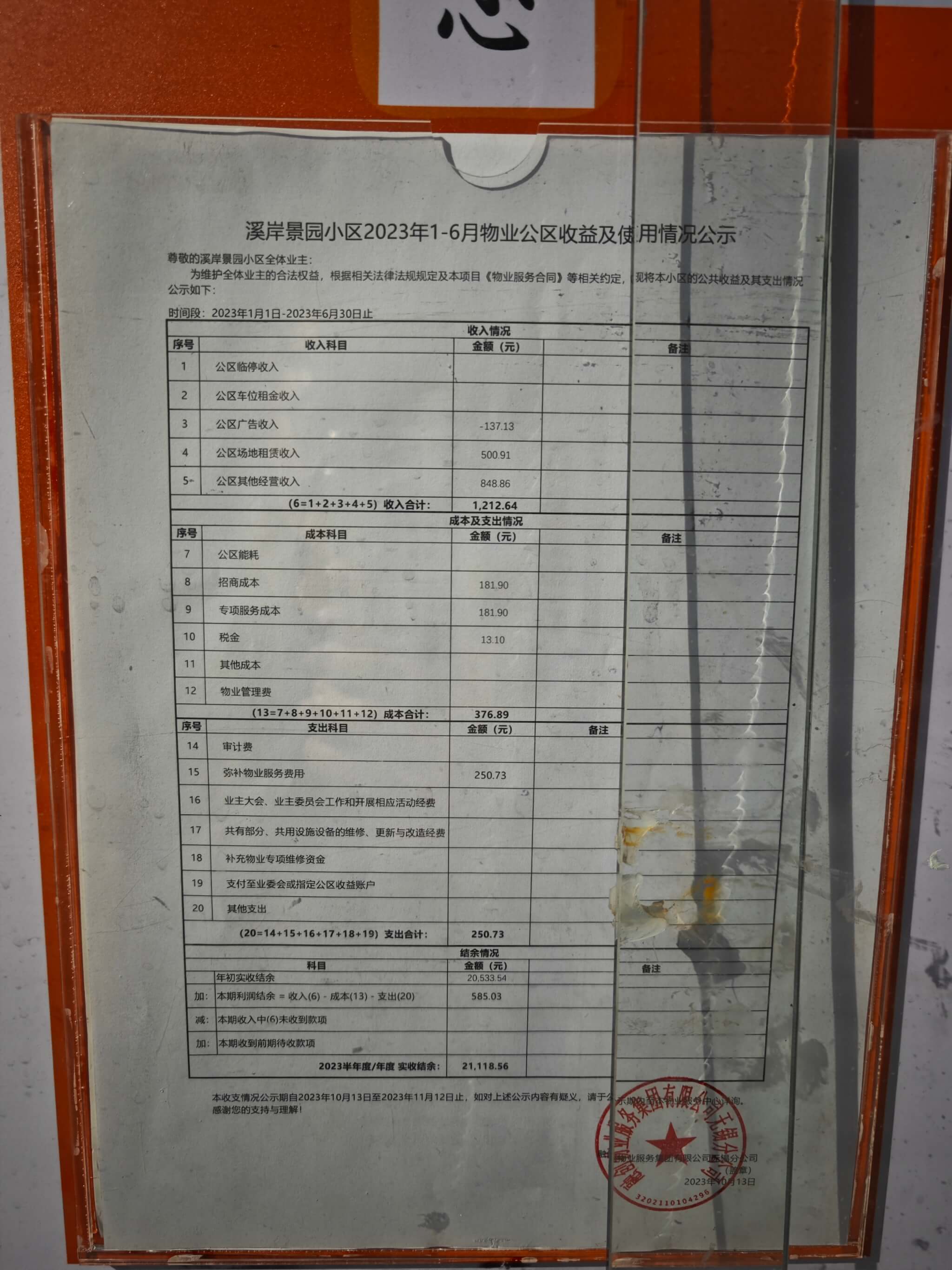 关于23年1-6月小区财务状况物业公示答复情况