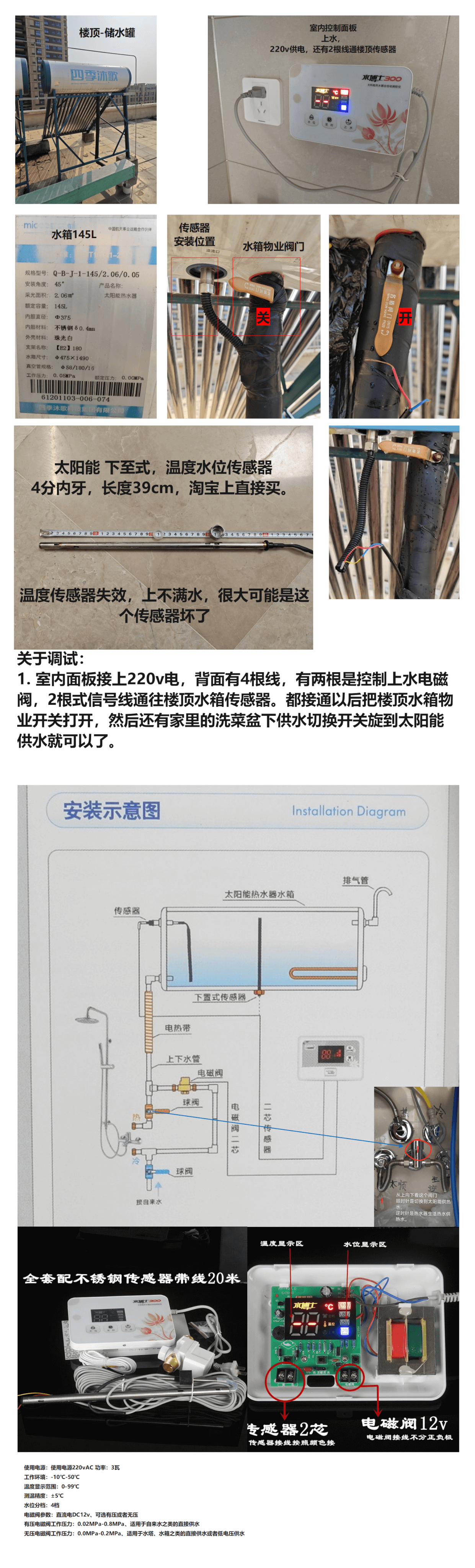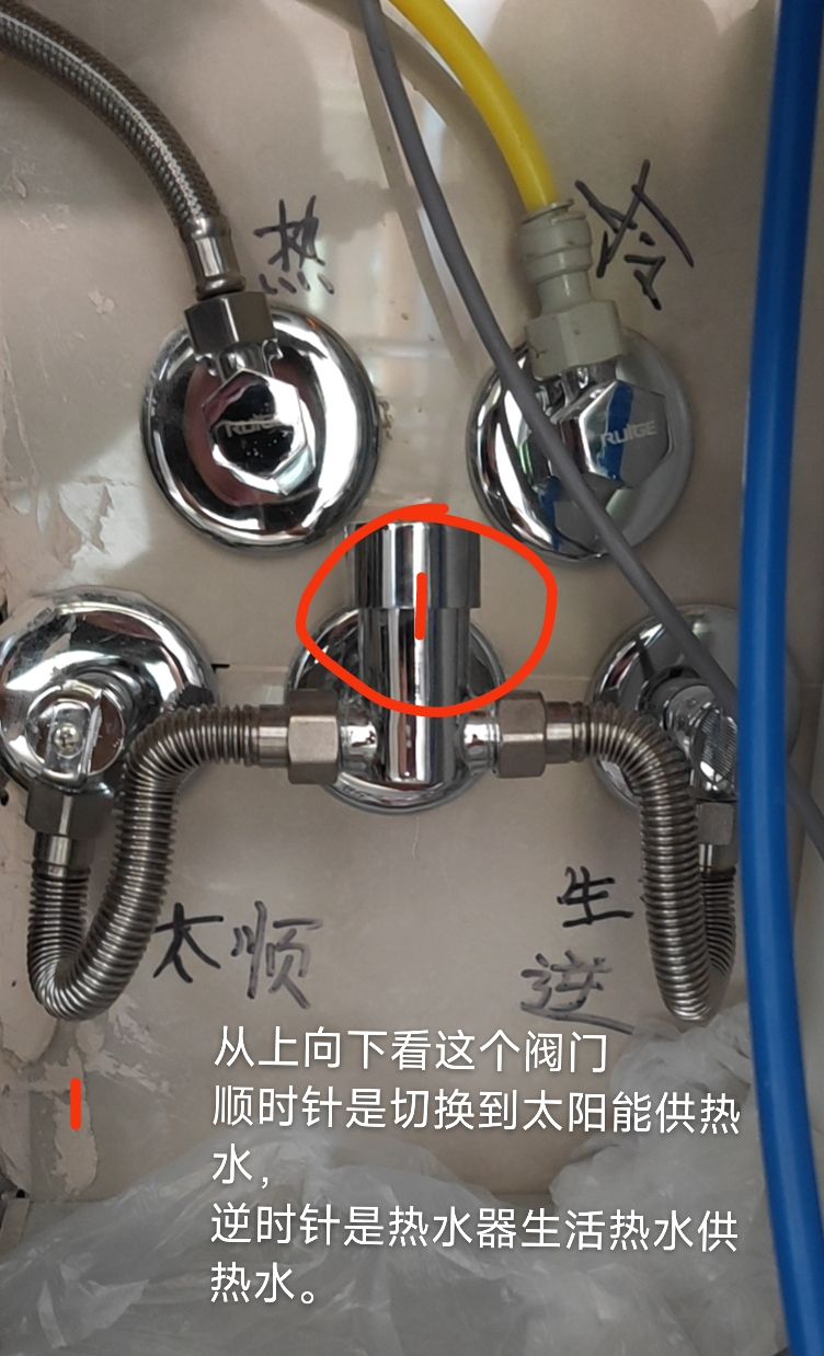 - 红色阀门顺时针旋转切换至太阳能供热;逆时针旋转切换至锅炉供热。